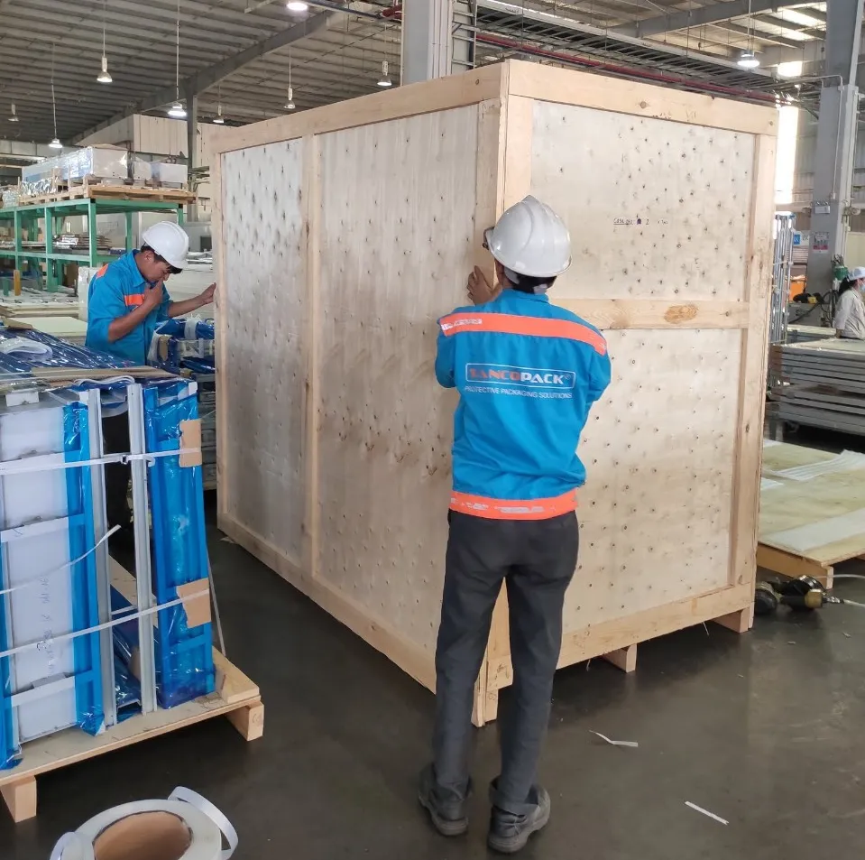 - Dịch vụ đóng gói bảo vệ hàng hóa: đóng thùng gỗ, pallet gỗ, chằng buộc, chèn lót, lashing, và quấn màng co chống rỉ sét…