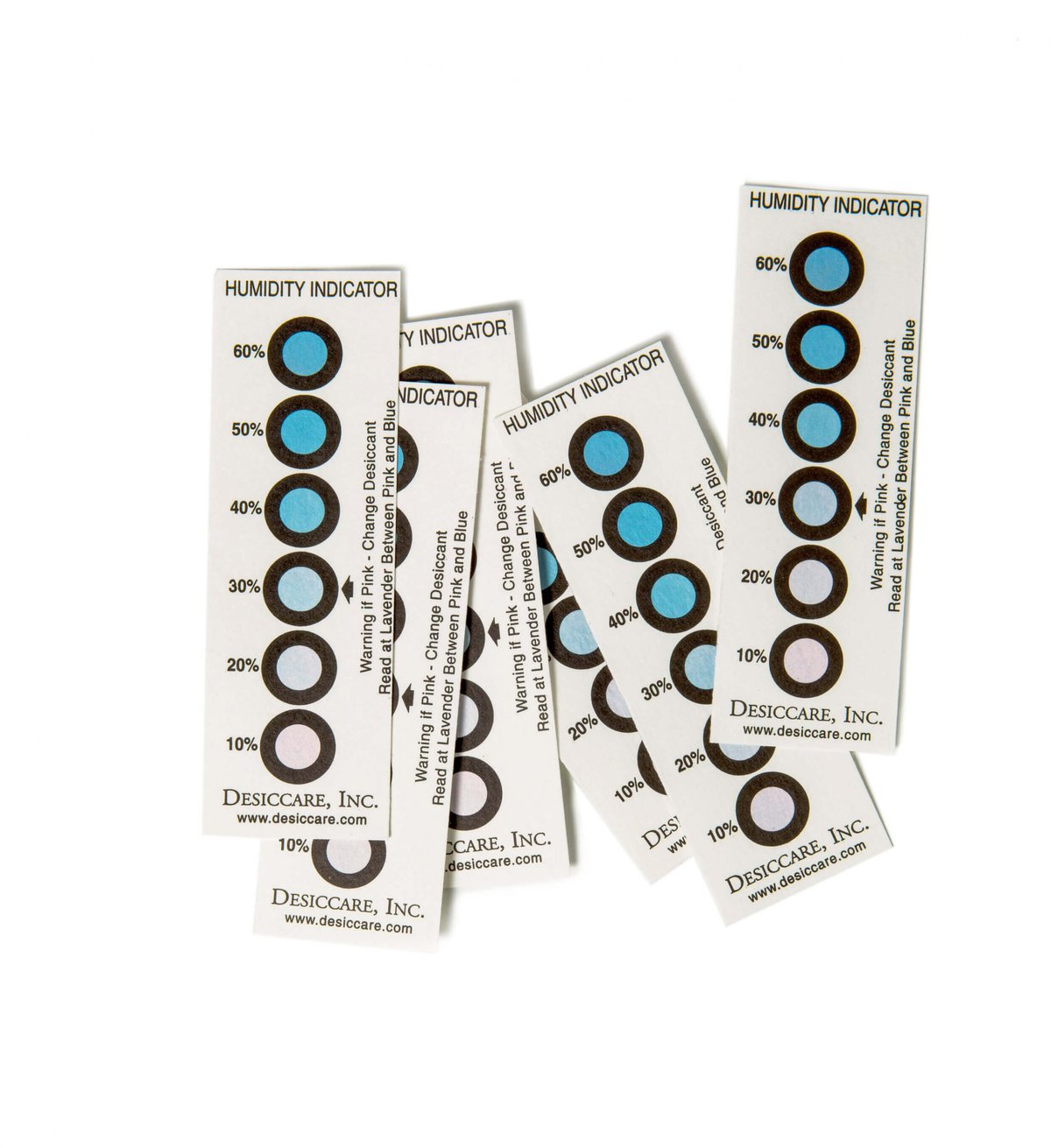 Các thẻ đo độ ẩm được ngâm tẩm với dung dịch coban clorua đã được pha trộn cẩn thận để chuyển màu từ xanh lam qua các sắc thái khác nhau từ đỏ tươi – đỏ, sang hồng. Những thẻ này không phải là chỉ số chính xác (chỉ ở mức độ tương đối). Tuy nhiên, chúng rất giỏi trong việc cho bạn biết độ ẩm tối đa có thể có trong bao bì, thùng chứa.